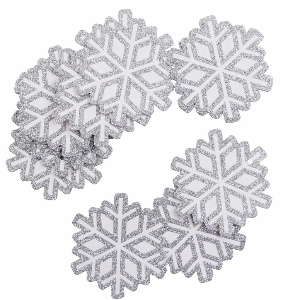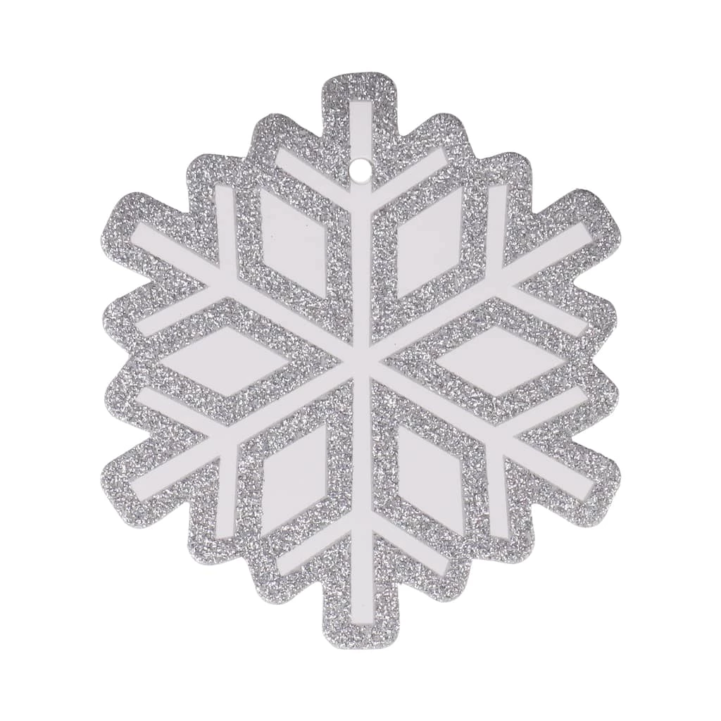 - Silver glitter and white snowflake design with white string
