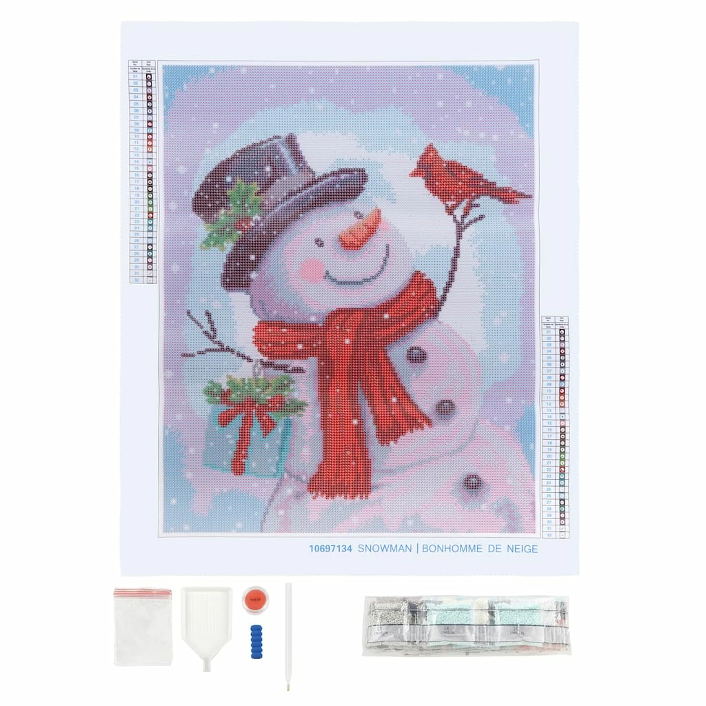 You’ll have a blast assembling this fun snowman and cardinal diamond art kit. The set features the tools needed for you to get started immediately!