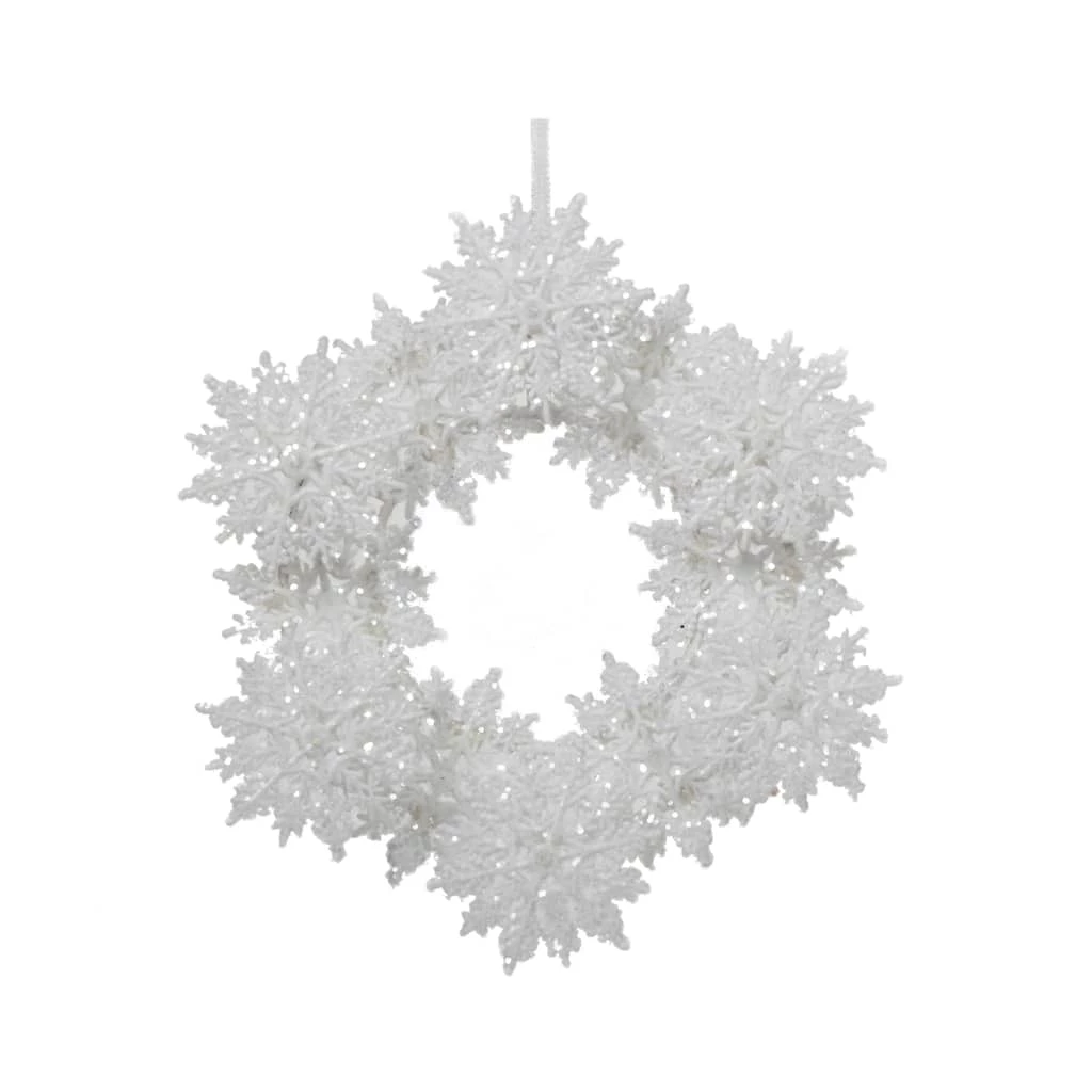 This beautiful snowflake wreath ornament is perfect for sprucing up your holiday dΓ©cor. Use it to embellish a tree, wreath, or garland for a whimsical display!