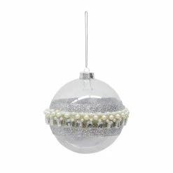 This beautiful glitter and pearl ball ornament is perfect for sprucing up your holiday dΓ©cor. Use it to embellish a tree, wreath, or garland for a whimsical touch!