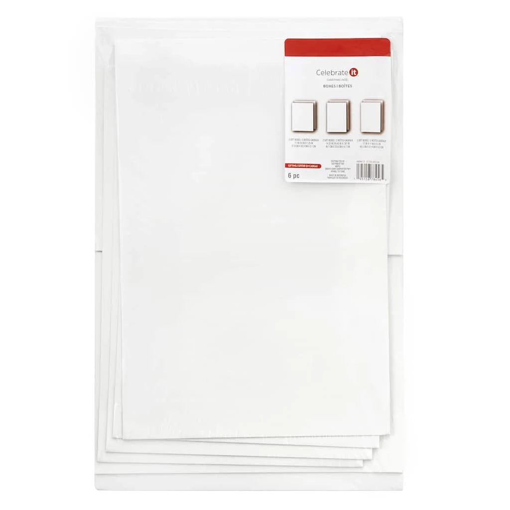 These white Christmas gift boxes are ready to be personalized with ribbons, name labels, and more! This set features 6 boxes in 3 different sizes to accommodate a variety of packaging needs!